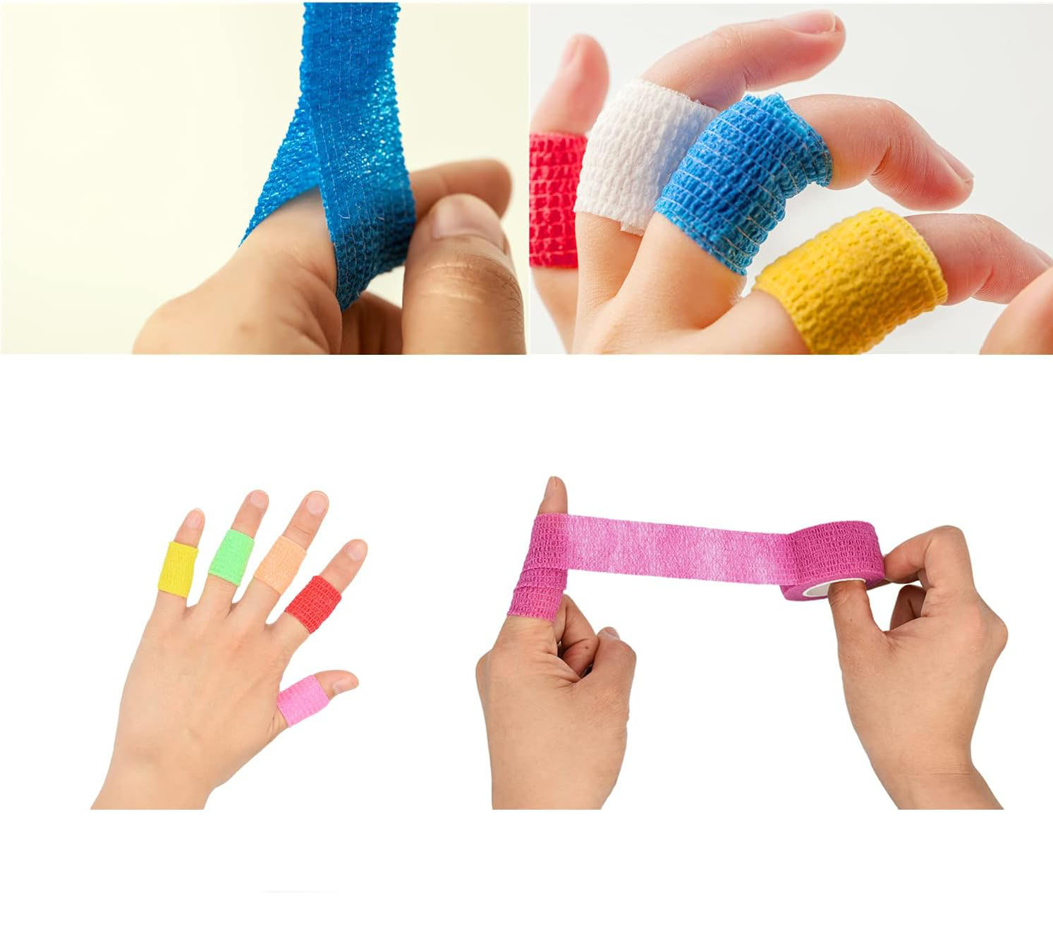 3. Selbstklebende Technologie: Diese Bandagen sind so konzipiert, dass sie an sich selbst haften, ohne dass Klebstoffe oder Klammern erforderlich sind. Sie sind einfach zu verwenden und vermeiden Hautirritationen. Ihre einzigartigen kohäsiven Eigenschaften sorgen für langanhaltenden Halt, selbst in anspruchsvollen Umgebungen.
