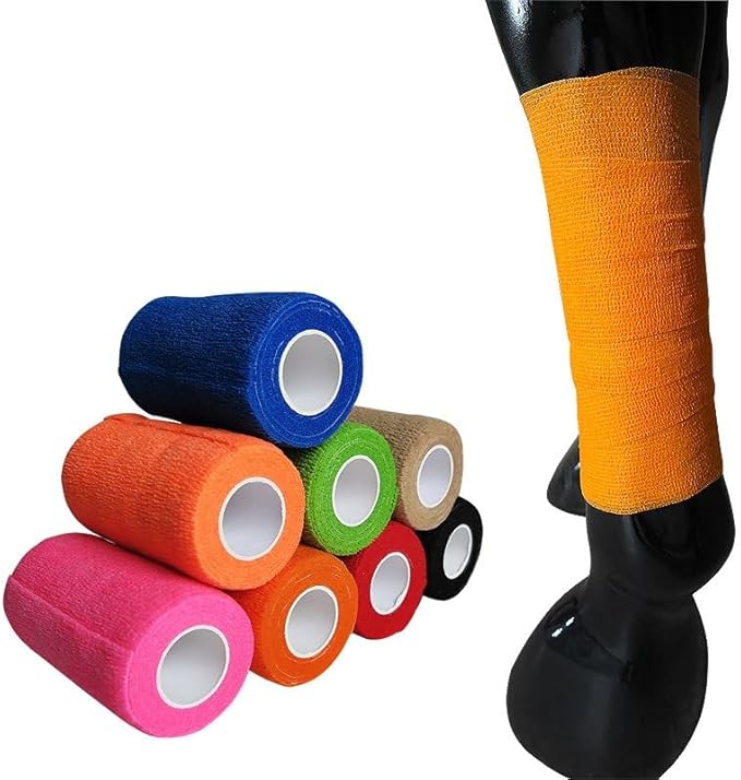 2. Zuverlässige Selbsthaftung: Dieser kohäsive Verband ist für eine mühelose Anwendung konzipiert und haftet fest an sich selbst, ohne dass Clips oder Stifte erforderlich sind. Die selbstklebende Funktion sorgt für einen festen Sitz, der auch bei anstrengenden Aktivitäten an Ort und Stelle bleibt. Aufgrund seiner kohäsiven Beschaffenheit klebt es nicht am Fell des Pferdes, wodurch Beschwerden und das Risiko von Hautreizungen vermieden werden.