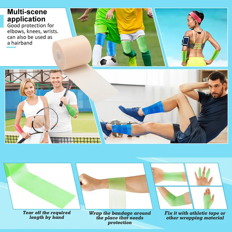 - Vielseitige Anwendungen: Unter Sporttape vorwickeln, Polster und Kühlpackungen halten, Scheuern verhindern, Schienbeinschoner befestigen oder temporäre Stirnbänder herstellen.